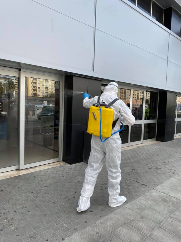 La Unidad Militar de Emergencias (UME) procedió, esta mañana, a la desinfección de la Estación Marítima de Málaga que conecta con el norte de África, como ha venido haciendo en otras terminales de la capital malagueña.